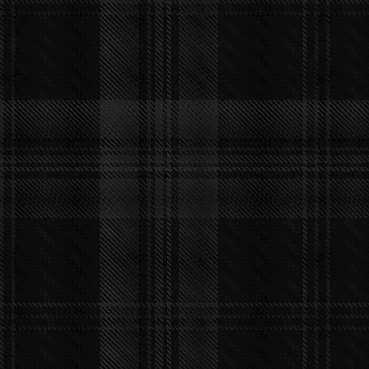 "A Solid Sett* tartan and an innovative departure from conventional tartan design. An ecru (white) yarn has been woven on a Jacquard loom with the sett being formed by stitches other than 2/2 twill and then the finished fabric has been piece-dyed black. The sett is highlighted because of the differing light reflecting qualities of the stitches. Here they are shown in grey so as to be discernible. *This new category of tartan has been given the description of Solid Sett - a solid colour but with a sett still showing."