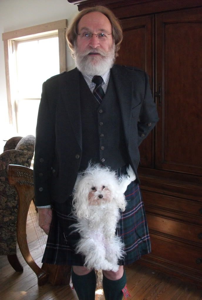 I come down the stairs to see the love of my life in a kilt with an angry cat strapped to his crotch. The cat is howling, twisting and doing her best to inflict as damage as felinely possible. She must have had something important under one of those paws, because he stopped cursing and trying to wrangle her in order to let out a scream similar to something usually only heard coming from the mouths of little girls....