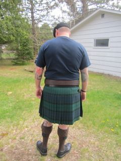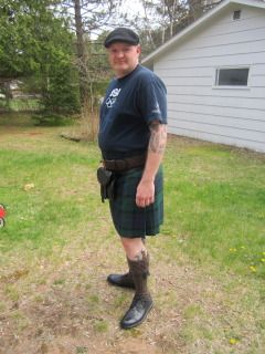 The cap and shoes are thriftstore finds,the belt is also second hand as are the hose .The shirt is Team USA/USOC that was given to me for our departments part in the IPC nordic ski World Cup(we all got stuff from most of the teams)My girl called this my recycled kilt outfit.
