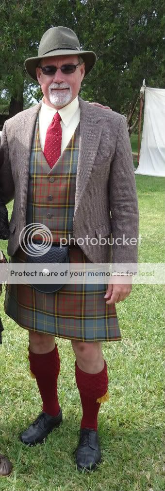 Likewise with my RAF tartan kilt - blue. Navy or light blue hose, light blue shirt, navy blue waistcoat, dark blue jacket and RAF or bright blue tie.