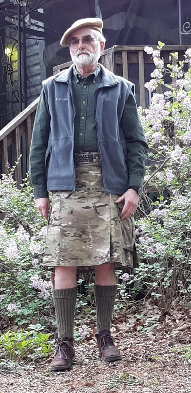 Multi-cam 5.11 Tactical kilt this Friday. It's a jungle out there. A big hit with the staff at the local Gander Outdoors & RV center. Yeah, I'm really happy to make it to the weekend!