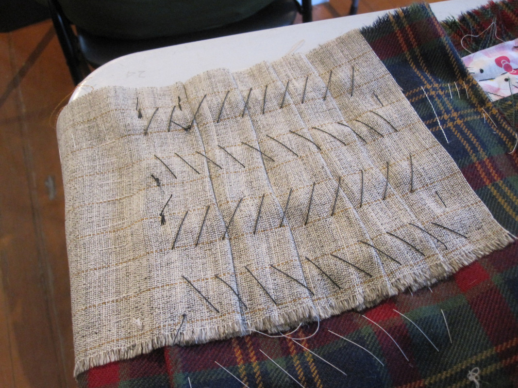 If you were to look inside the kilts in both Barb's and my examples you would find something different. In both of our examples it is not the outer fabric, nor the stitching, that gives the garment its strength and its shape.