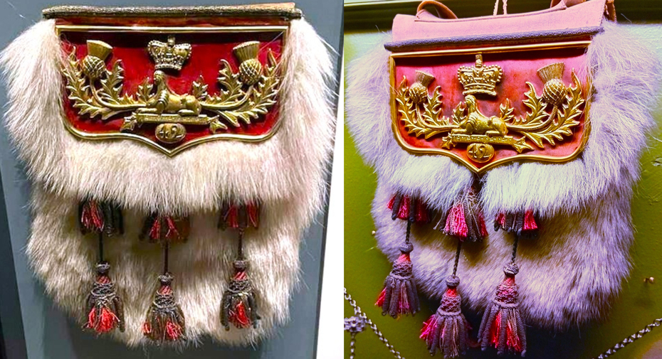 This Napoleonic-era Black Watch officers' sporran is on the ornate side, many just had plain fur flaps.