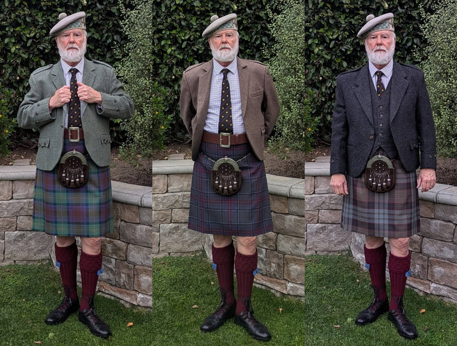 My only comment would be that if I were wearing that jacket and kilt, my go-to shirts and neckties would automatically add some contrast and pattern, say one of my Tattersall shirts (white with over-check) and one of my neckties (contrasting colours to the shirt and jacket).
