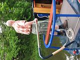 Dirk Skene- The boat is 63' long and 7' wide and weighs about 30,000lbs with a single diesel engine and a tiller. You go no more than 4 mph on the canals and it is GREAT! Beautiful countryside with cows, sheep, ducks, and swans all along. We went from Falkirk eastbound towards Edinburgh and stayed overnight tied up along the way.