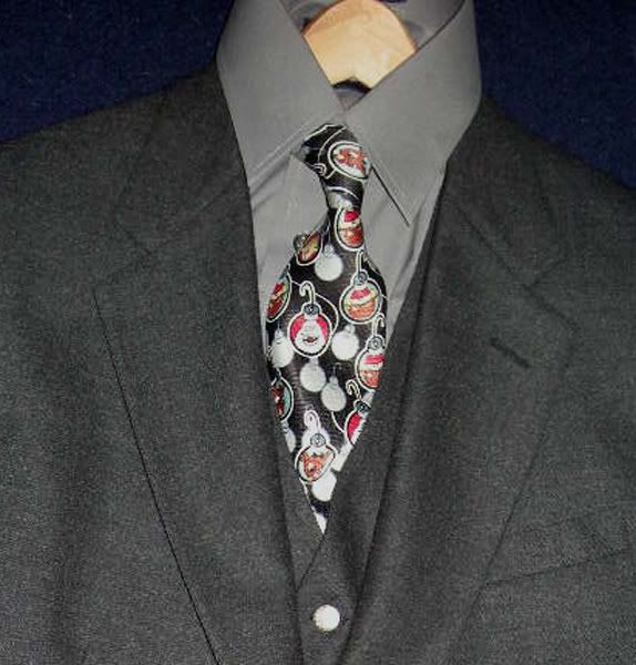 Victoria, I have worn a tie almost continuously for over 40 years & I use them to "sutilly" change the look of an outfit. The tie was chosen to fit the season (it has a Christmas motif + the colors) I wore it, plus the "snake garters, to present a "festive mood".IMHO, I felt the Jacket & Vest sufficiently separated it from from the kilt. If it had been a more somber occasion, the tie would have been my charcoal grey wool & the garters would have been either light grey or charcoal.