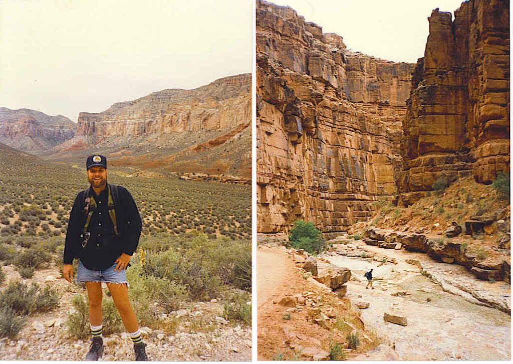 The left pic is the bottom of the cliff after switchbacking down from Hualapai Hilltop. The right pic is the "little side canyon" about halfway in to Supai Village I'd guess. Might be closer to the trailhead since the canyon walls are still pretty low.