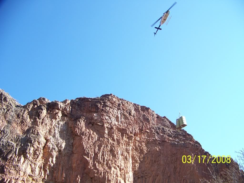 Here's a pic of the helicopters that fly folks in and out for folks that don't wanna spend most of the day hiking in or out. Was $85 each way a couple years ago. I'm sure its a bit more now with gas prices up.