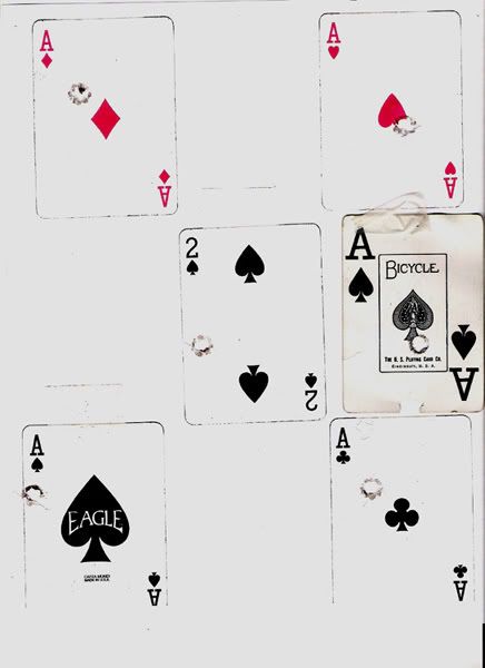 Now as to accurcy, lets compare them to what a good Rifled pistol can do. This target was shot the same day, when we played "ACES" for int: ( I did not win, BUT I did not BUY )