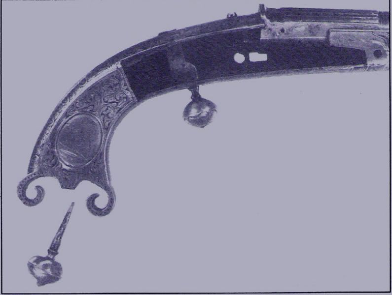 ....The 60 pistols above the total for other ranks were to be distributed to the sergeants and corporals if they so wished. These mass-produced factory pistols were of poor quality and vastly inferior to those made for private use. Many of the men, and all of the officers carried their own personal pistols, handcrafted and sometimes inlaid with silver and gold.