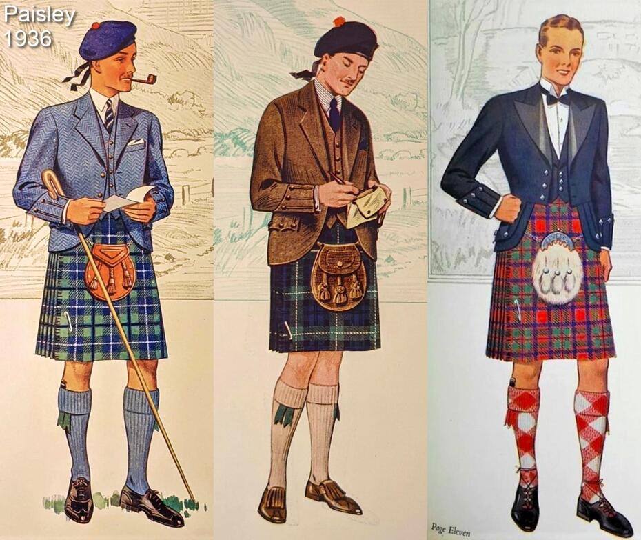 Here's a couple tweed gents from the 1936 Paisley catalogue. Note the hose "to tone with" the tweed (brown jacket and Fawn hose, often seen).