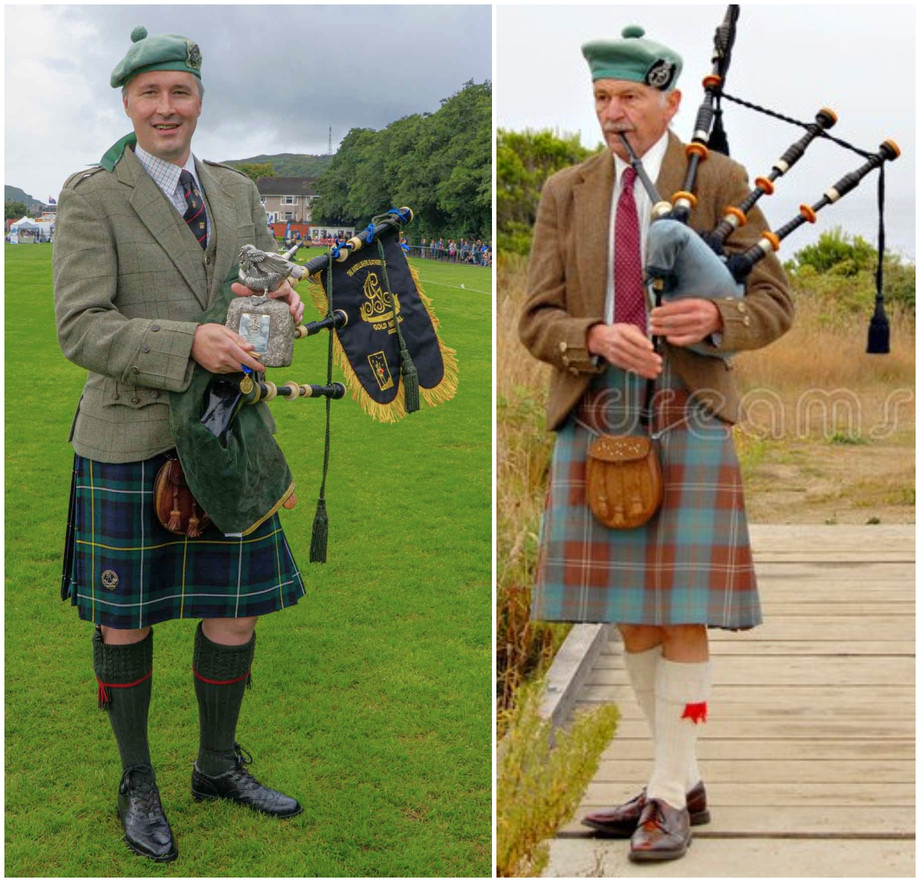 Here are two pipers wearing Lovat Green Balmorals showing how, and how not, to do it.