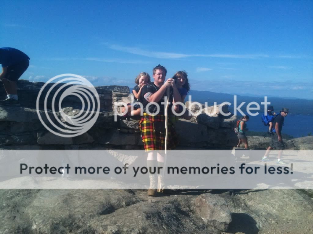 Today myself and the family decided to hike the nearby peak, Mount Major. Being in the high 70's I thought this a perfect opportunity to throw on my kilt and sporran and have at it, regimental. It was about an hour and a half of steep inclines, but the view was fantastic. I have never been so comfortable. The only thing that felt odd was the sensation of sweating about the ballocks (which I'd imagine you get used to)