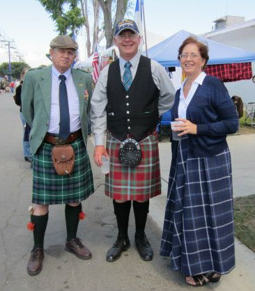 OCRichard stopped by our clan tent on Saturday, bearing gifts! I greatly enjoyed the "Black and Blue," thanks again! This is Bob in his new MacDonald of the Isles; OCRichard in his LA Scots band get-up; and me in the XMarks tartan.