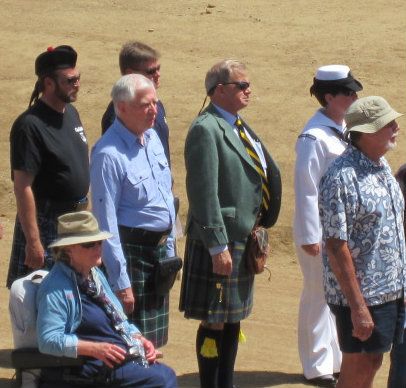 Among the veterans: my grandniece Ginger, active duty Navy; Bob in his Leatherneck kilt; and friends Chuck and Kathleen Ables, both Marines (Kathleen, sadly, now gets around in a motorchair due to MS)