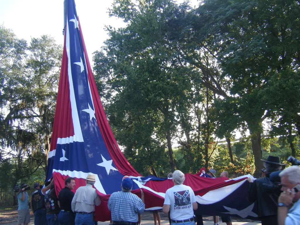 Here is a pic I took at the raising of the largest Confederate Battle flag 30' x 50'