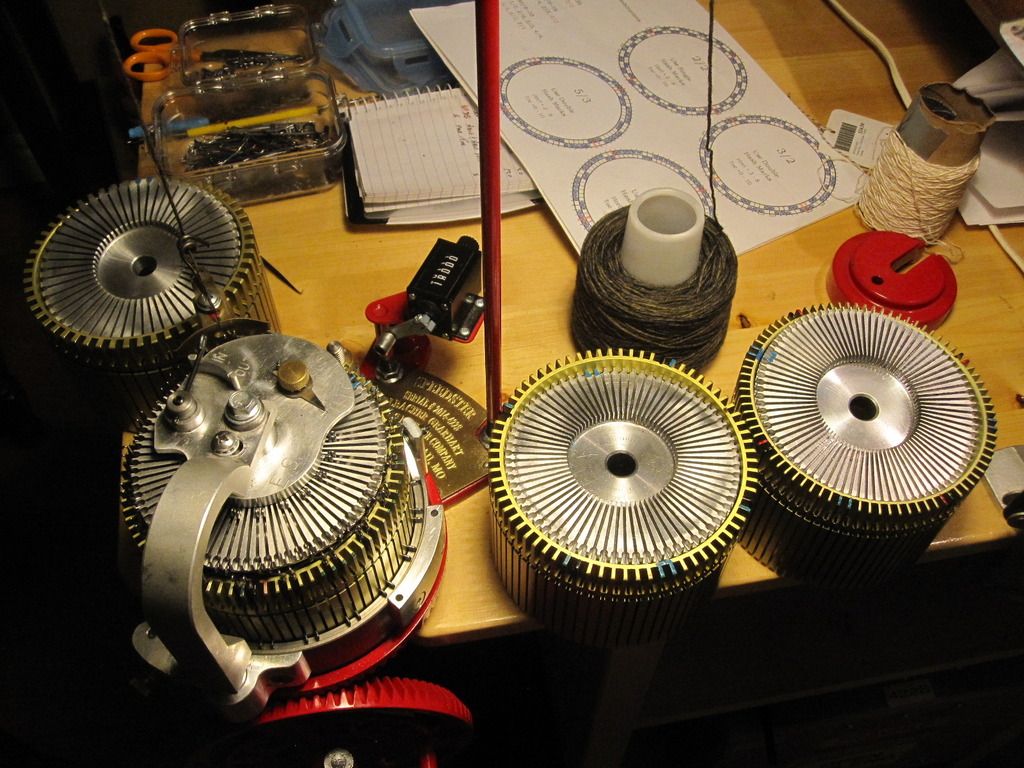 But I really need to practice more on my circular machine.  It is so much easier.  I have capability of 6 different colors in work at the same time and I don't ever need to transfer stitches off the machine onto hand knitting needles.
