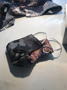 Here are my masks (not shown are the two I made for my friend, which are entirely of the light-blue-with-stars pattern you see on the inside of the navy-blue-with-stars mask at upper right):
