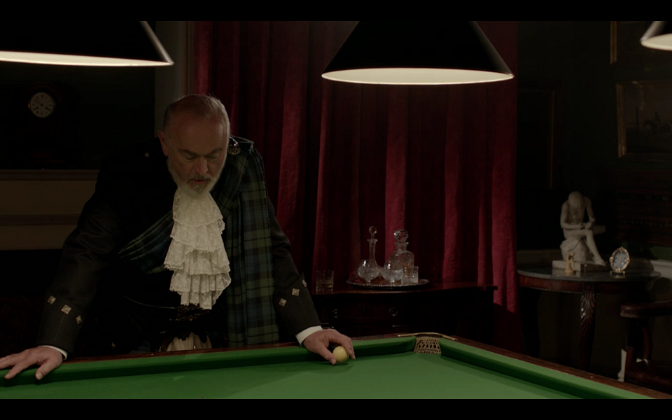 Our first encounter with Highland Dress is when the main characters are met by Hugh MacClare (Peter Egan) at Inveraray Castle.