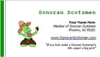 Yeah we started doing the business card thing with the Sonoran Scotsmen a while back. It makes it handy for whenever someone starts asking about the kilt and want to learn more. We still haven't had them done "professionally", but the ones that we made definitely look good enough.