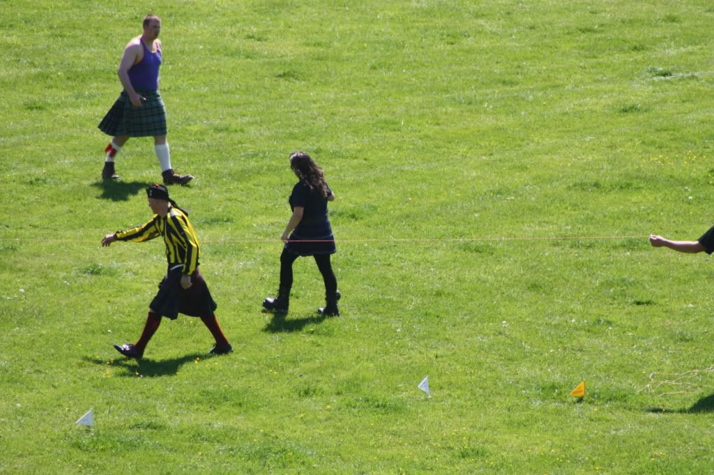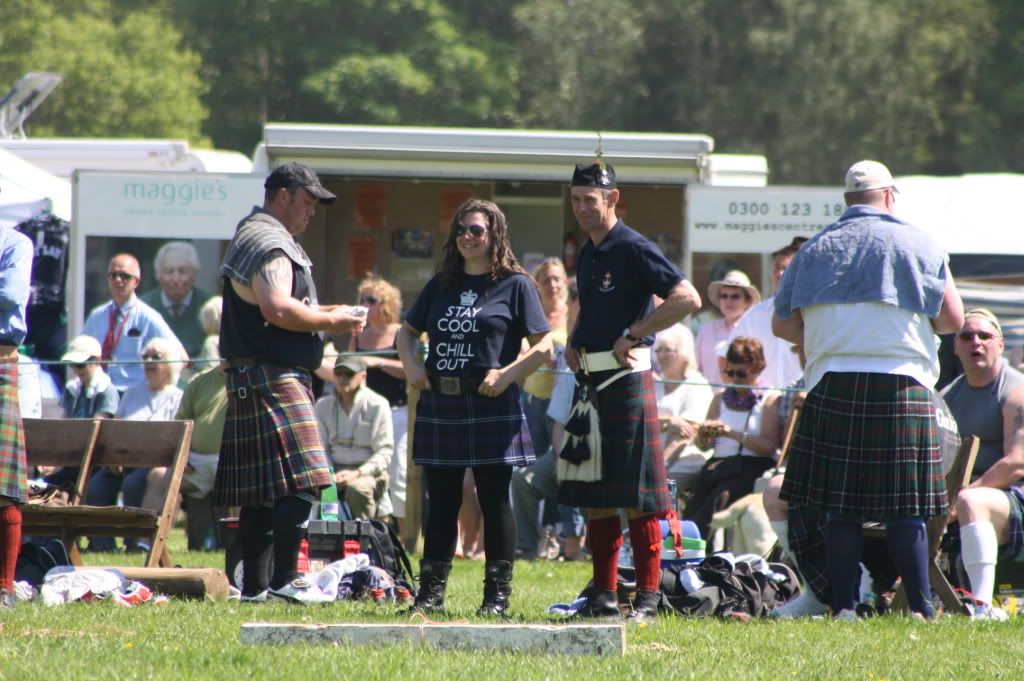 Great pics, some good action shots there. I am thinking it must have been very warm wearing black leggings with a kilt despite the "Stay Cool" tee-shirt .