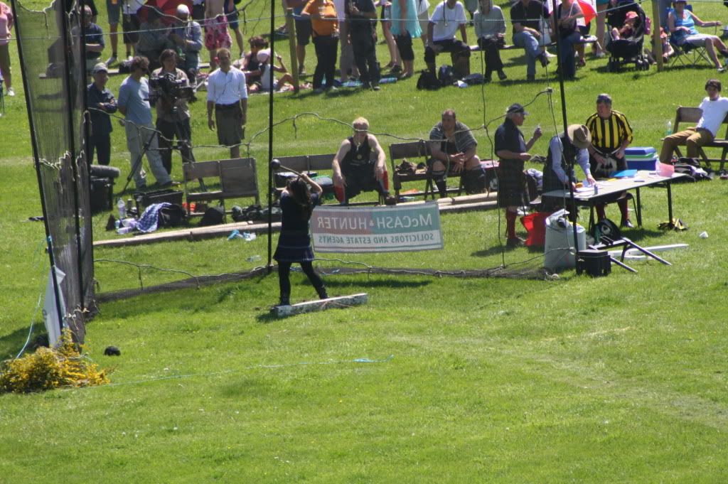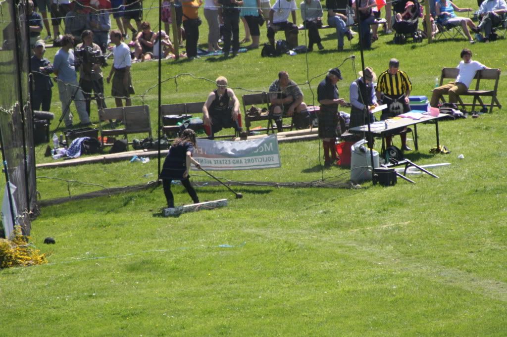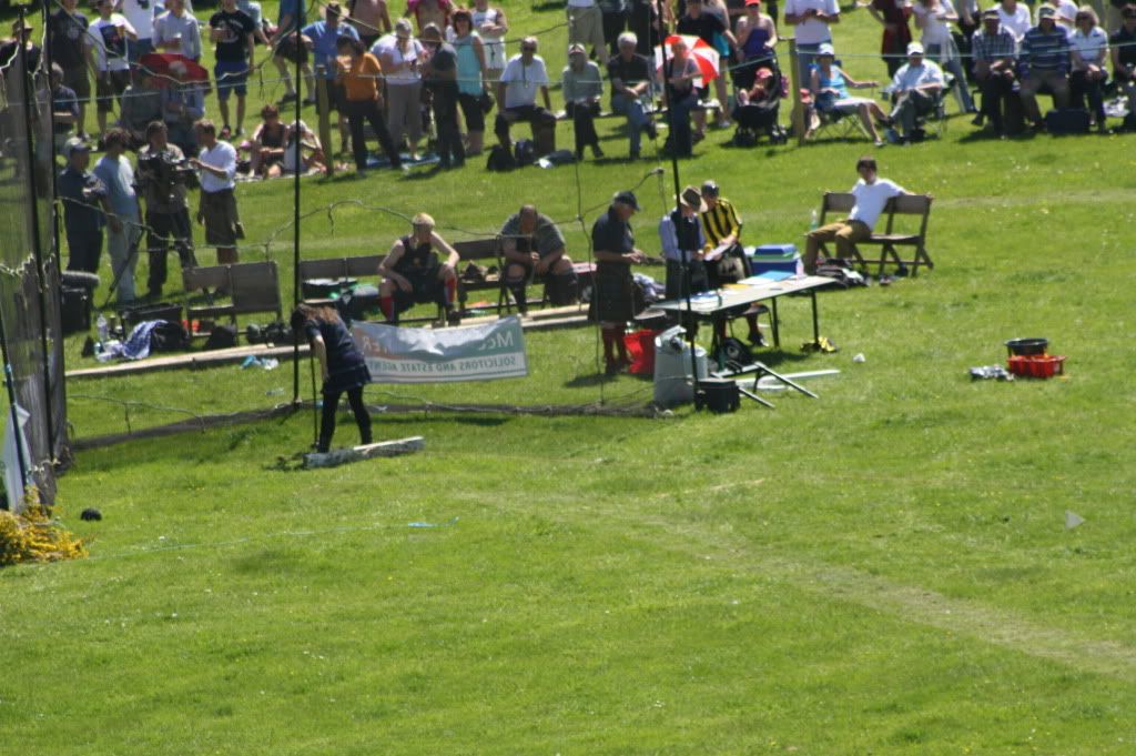 Alan, the sheaf is an event that happens at some Games and not at others - this particular sheaf was made of broom, smothered in bright yellow broom flowers, and was very loose and unpopular with the guys. I had a stab at it while the guys were practising, but it was too heavy for me so I scratched in that event too.
