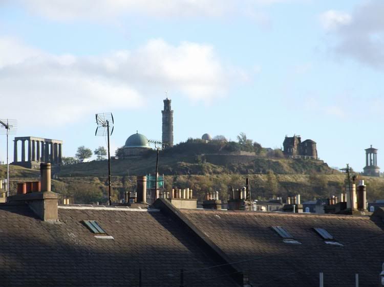 Shot of Calton Hill from Broughton St - you can see "Edinburgh's Disgrace" at the left.