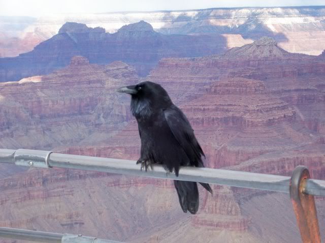 The Navajo word for raven is "Ga-Gee" which is a lot like their call. They're also called Navajo Chicken, Navajo Air Force, and Flying Rats...very intelligent birds and into most everything that isn't nailed down. Put a bag of dogfood in the back of your pick up and walk away and a raven will peck open the bag, feast on the dogfood, and call his friends to join in the feast.